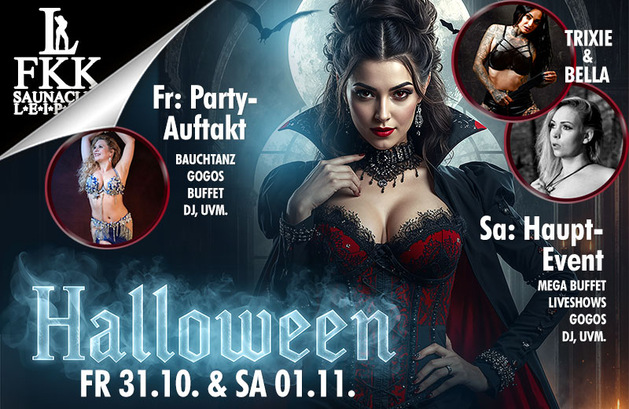Egal, ob Himmel oder Hölle - zur Halloween Party am Freitag, den 31.Oktober und Samstag, den 01. November 2025 geht es sehr ausgeglichen zu im Saunaclub FKK Leipzig. Der DJ bringt an beiden Tagen coole Vibes und das Programm stabilisierende Hitze, die von Gogos, Bauchtanz, Special Live Shows von und mit Trixie und Bella und reichlich Partyspaß geschürt wird.