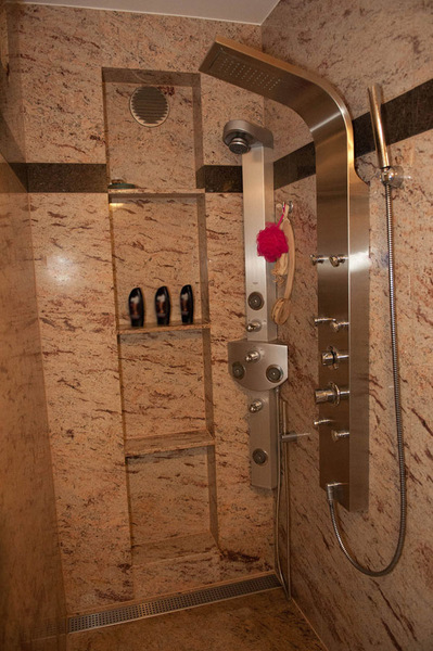 - Granitbadezimmer mit drei begehbare Duschen