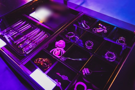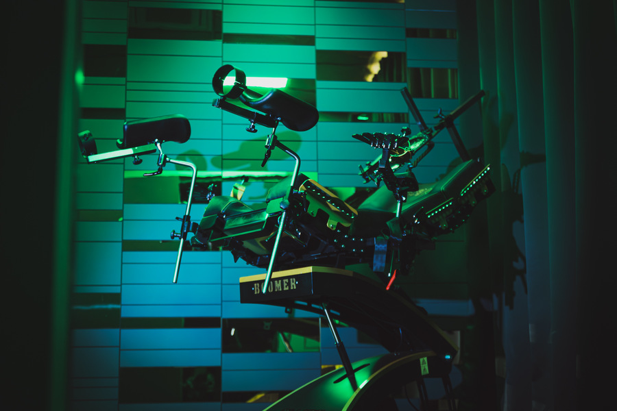 In unserer hauseigenen Rubber-Boutique findest du Anzüge in allen Größen, unzählige Masken, Heavy Rubber, Vakuum-Ausstattung, aufblasbare Säcke, Serious Kit, Doll-Transformation – alles nutzbar ohne Leihgebühr. Der Duft von Latex begrüßt dich schon beim Öffnen des gläsernen Herzstücks.