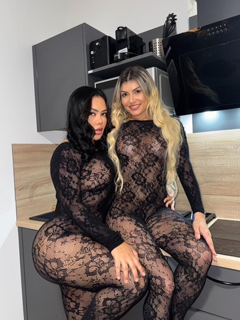 Eine Blondine (Emma) und eine Brünette (Mia). Wir sind jung (+18) und haben wunderschöne Gesichter, lange Haare, mandelförmige Augen und ein charmantes Lächeln. Durchschnittliche Größe, kurvige Körper, ausgeglichen und sehr sexy! Feste, voluminöse Brüste mit rosa Brustwarzen ... Meine Taille ist schlank, ich habe schöne Beine, einen runden, knackigen Po ... Meine Mus** ist rosa und glatt.