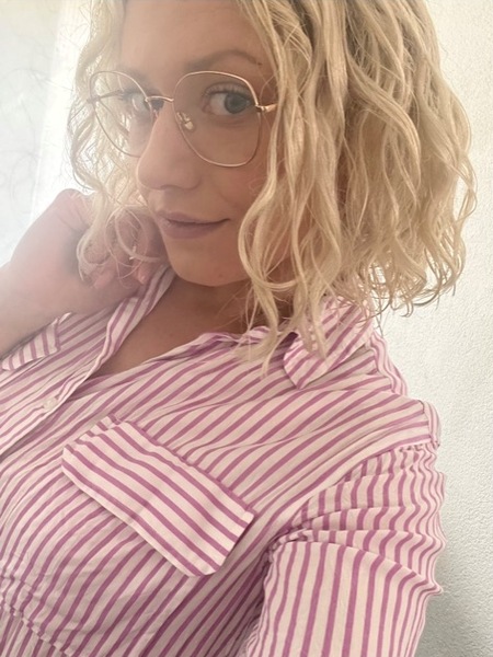 blond, schulterlang, gelockt